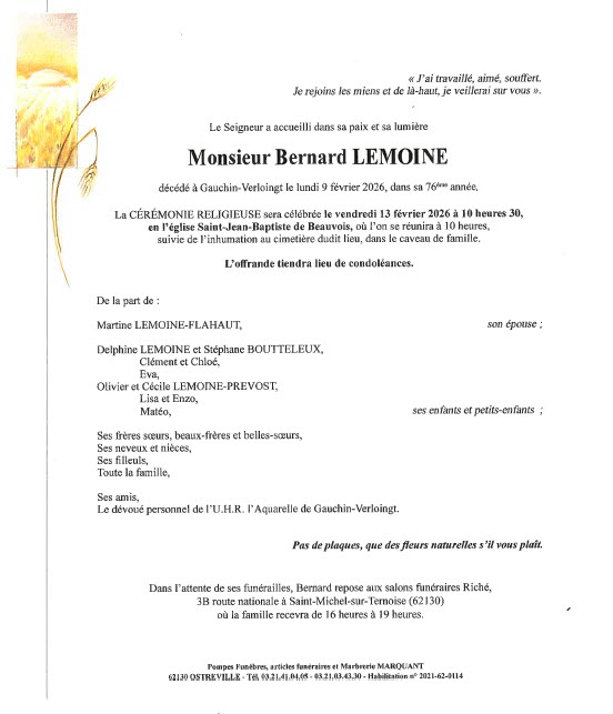 - Christian LUCET 74 ans (Œuf-en-Ternois) - voir le faire-part