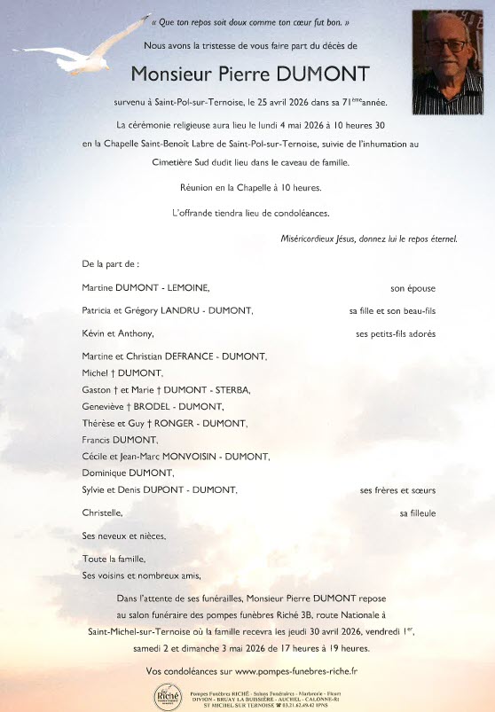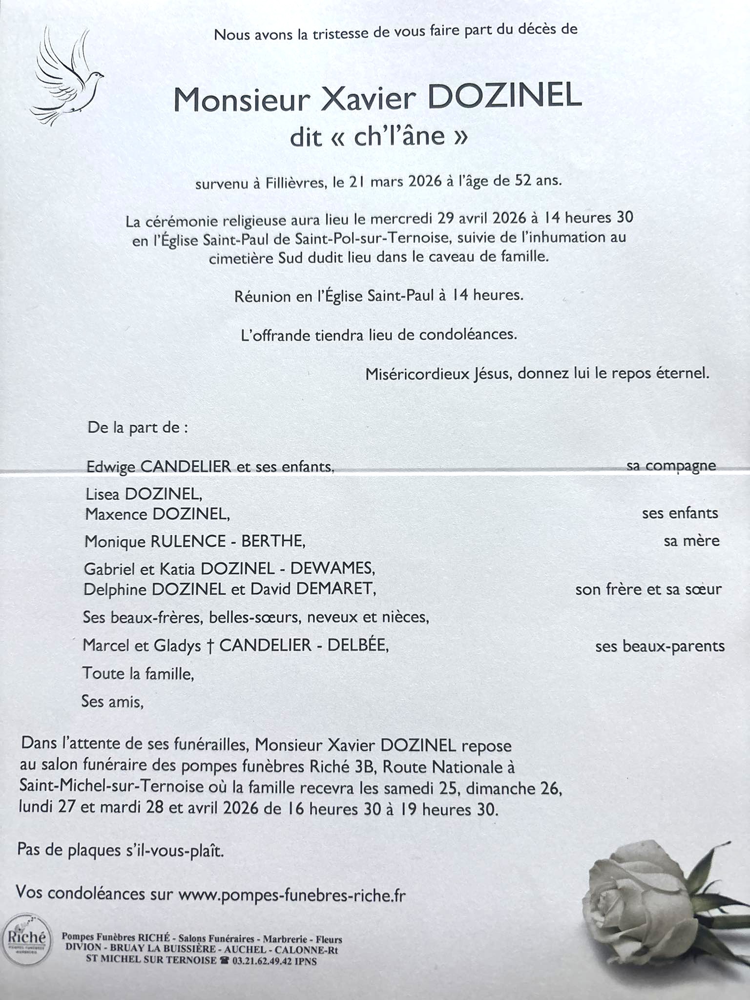 voir le faire-part - Xavier DOZINEL 52 ans (St-Pol/Ternoise)