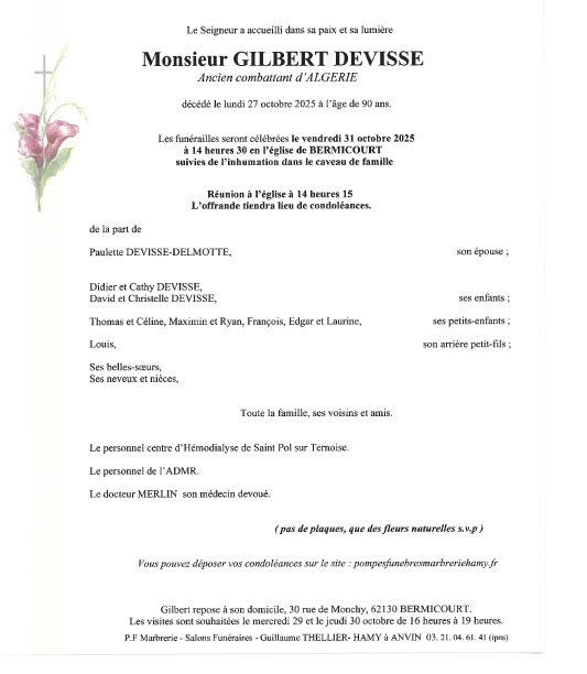Gilbert DEVISSE 90 ans (Bermicourt)