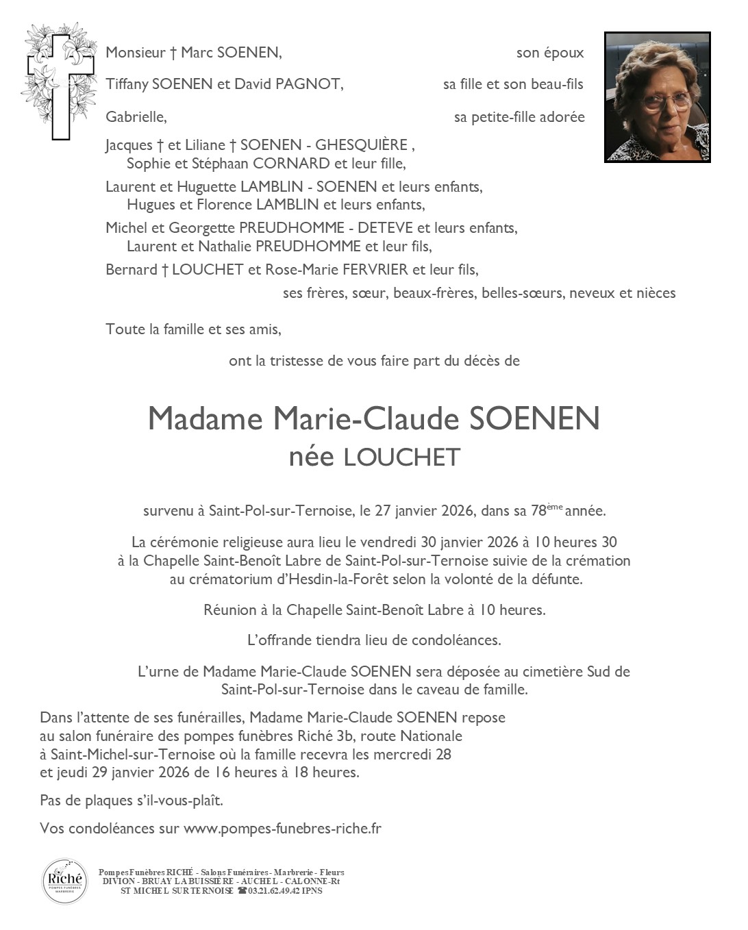- Josiane BOUCHEZ-FIQUET 85 ans (St-Pol/T)