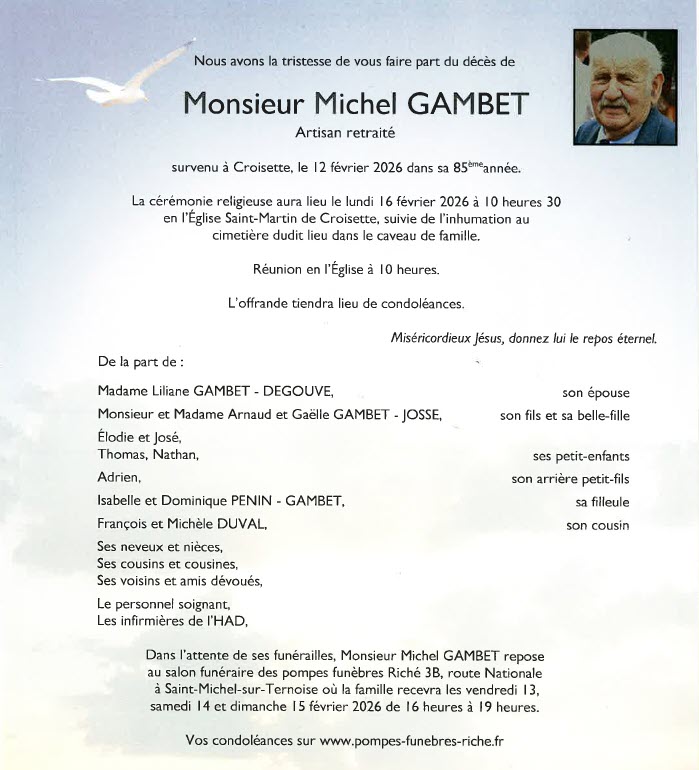 - Michel TRANNIN 88 ans (Œuf-en-Ternois)