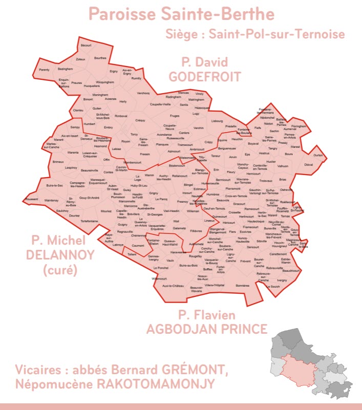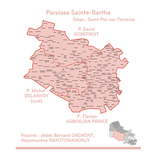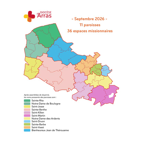 les 11 paroisses et 36 espaces missionnaires du diocèse d'Arras et leurs pasteurs.