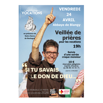 19h veillée de prière pour les vocations l'abbaye de Blangy/Ternoise, suivie d'un repas "croque-monsieur" (inscription nécessaire au 06 80 35 55 71)