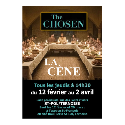 14h30 Diffusion de la saison 5 de « The Chosen » à la salle st François, cité Bouilliez à St-Pol/T