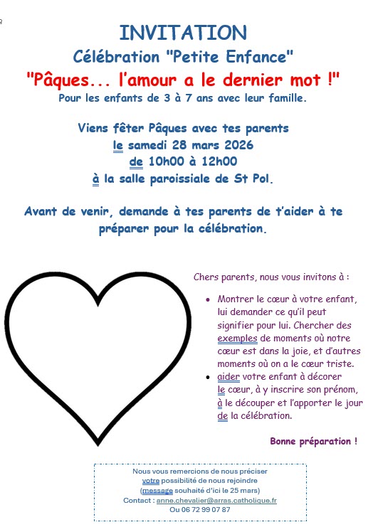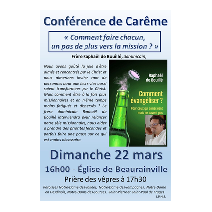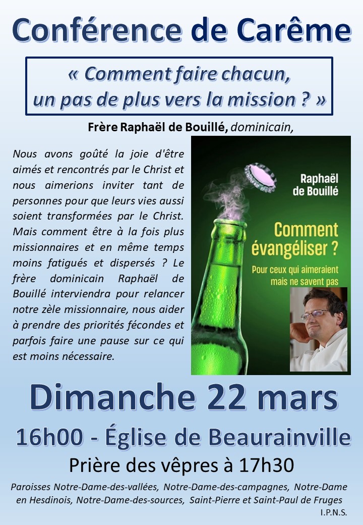 18h30 à la salle paroissiale à St-Pol/Ternoise : partage sur les textes bibliques de dimanche prochain
