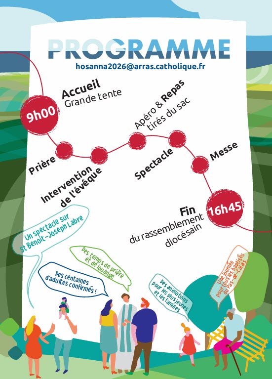 Cet événement marquera une étape décisive pour la transformation du diocèse d’Arras. Hosanna, qu'il entre le Roi de Gloire ! Bloquez dès à présent dans vos agendas le lundi 25 mai 2026 ! Ensemble, avec notre évêque, nous entrerons dans un élan nouveau. Nous rendrons grâce pour l’avenir qui s’ouvre à nous, au service d’une Église vivante, rayonnante et renouvelée.