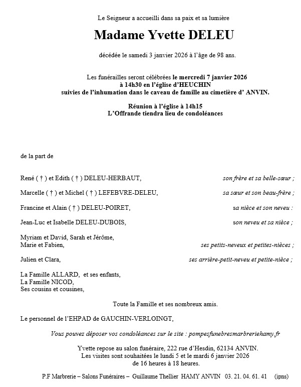 - Hélène KRZYZANOWSKI 92 ans (funérailles à Humeroeuille mardi 6 janv à 14h30)