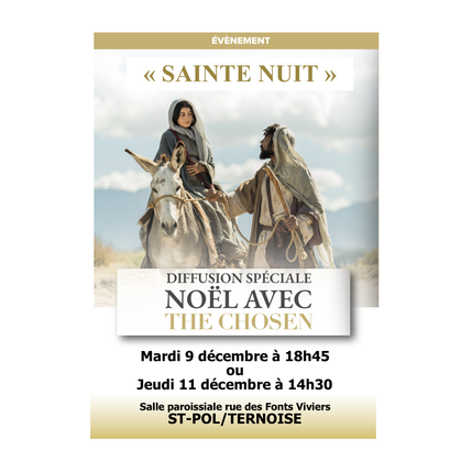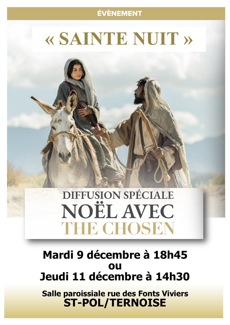 18h45 diffusion spéciale "Noël avec The chosen" à la salle paroissiale à St-Pol/Ternoise